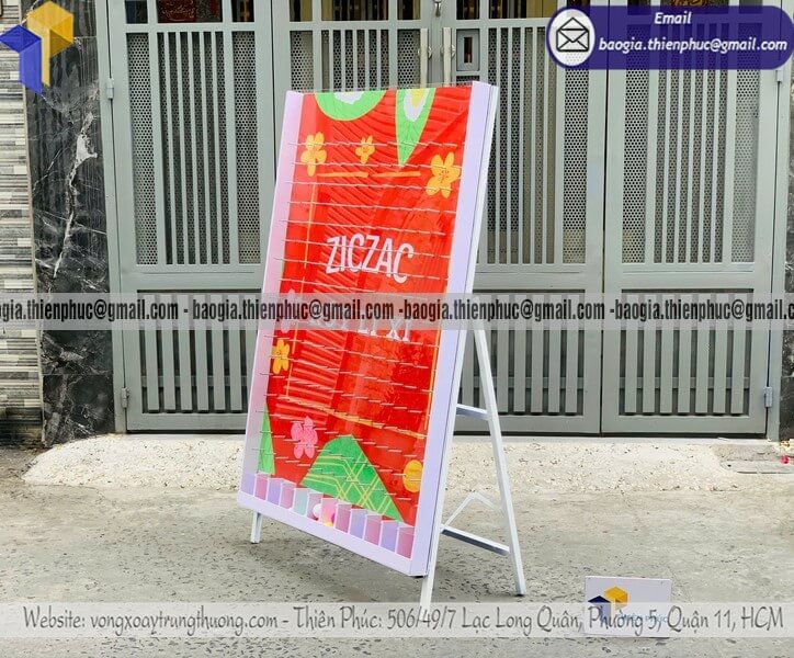 Mức giá sẽ thay đổi tùy theo các yếu tố như: kích thước bảng, chất liệu khung (sắt sơn tĩnh điện hoặc gỗ), độ dày mặt mica, số lượng ô thưởng, mức độ tùy chỉnh decal – nhận diện thương hiệu. Nhờ sản xuất trực tiếp tại xưởng, khách hàng luôn nhận được báo giá gốc cạnh tranh, không qua trung gian, dễ cân đối ngân sách sự kiện.