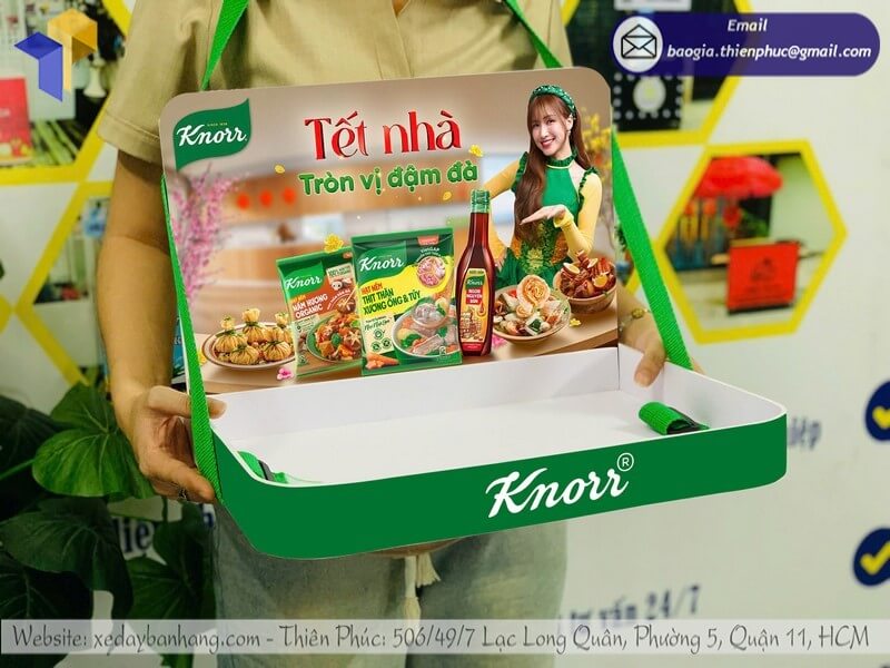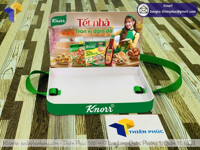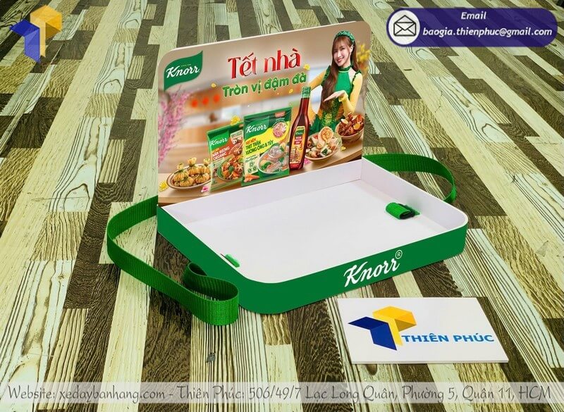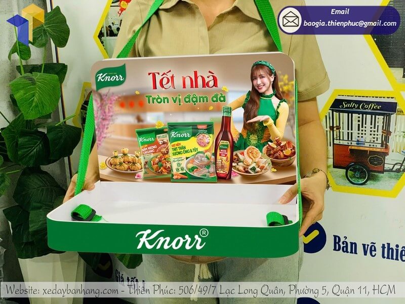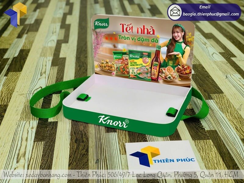 Tên sản phẩm: Báo giá khay nhựa sampling đeo phát mẫu sample rẻ cho nhãn hàng thương hiệu Hạt Nêm Knor
