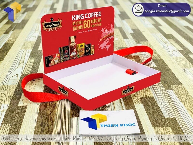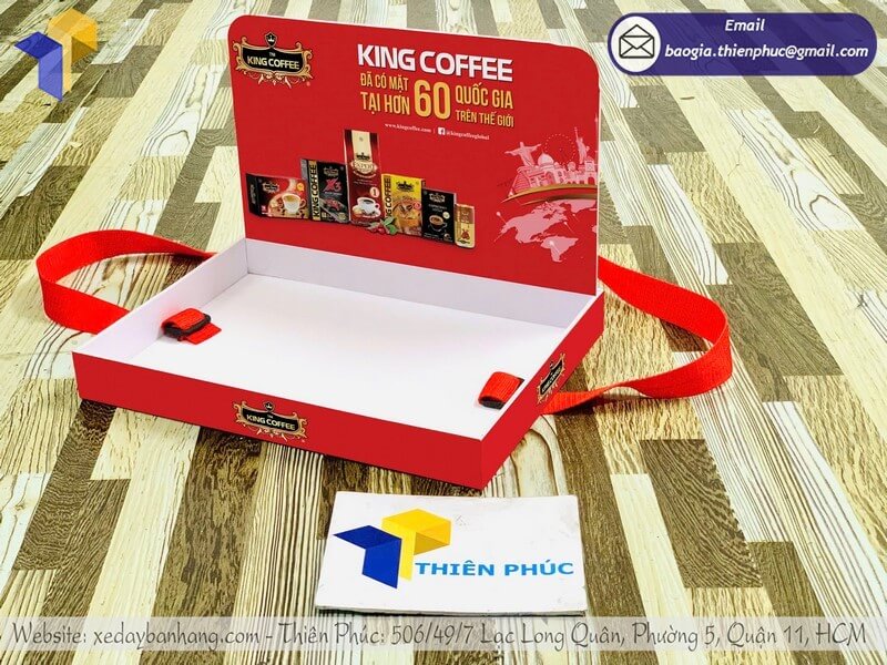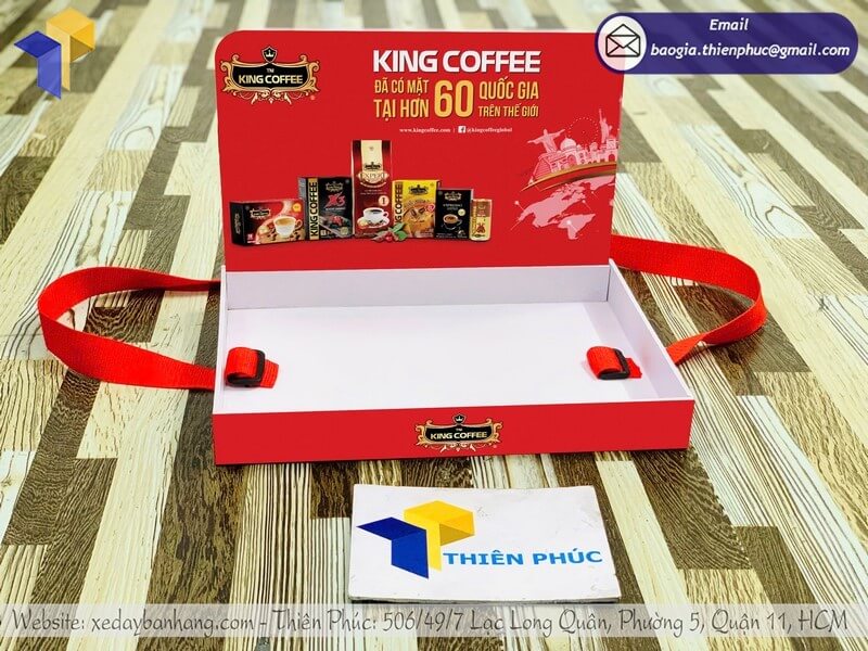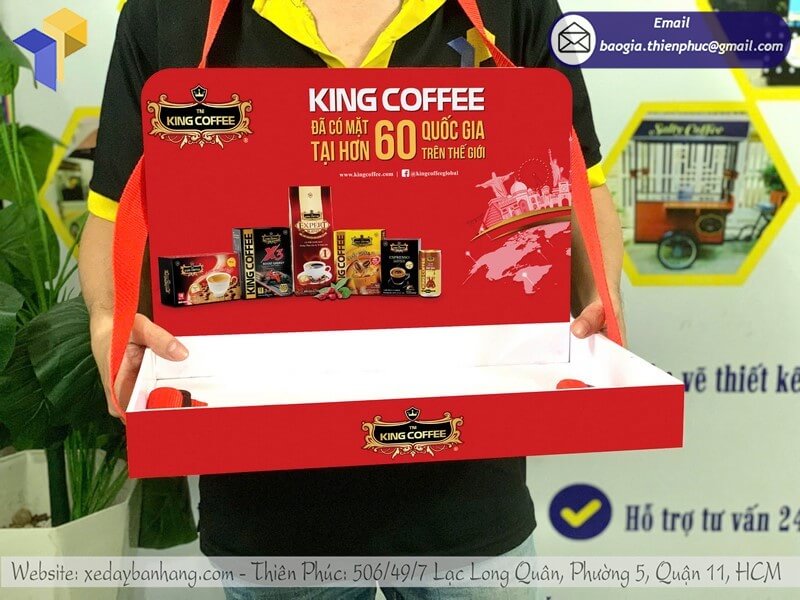 Tên sản phẩm: Báo giá khay PG đeo phát mẫu sampling rẻ cho nhãn hàng thương hiệu KING COFFEE
