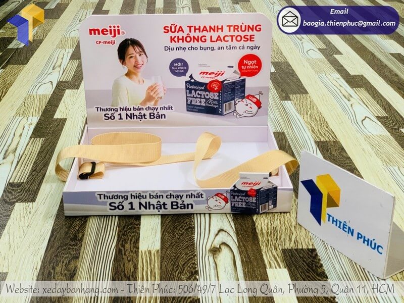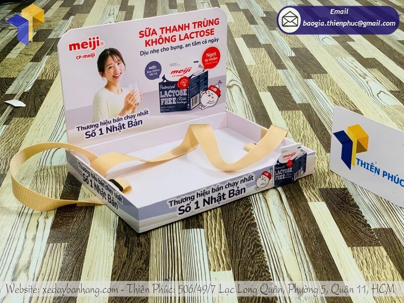 Tên sản phẩm: Báo giá khay PG sampling có dây đeo cổ nhãn logo SỮA THANH TRÙNG MEIJI