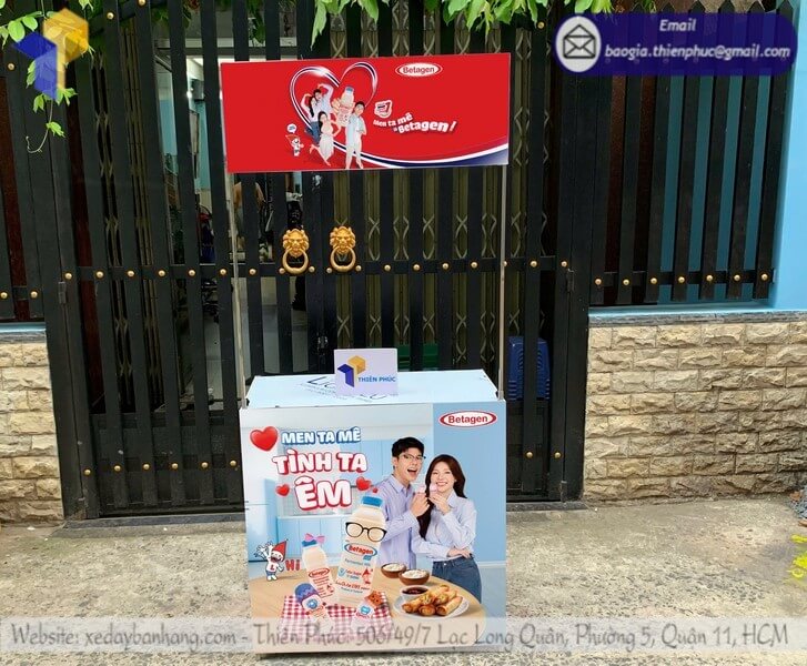 Tên sản phẩm: Báo giá quầy sắt sampling quảng cáo gấp gọn in logo cho nhãn hàng BETAGEN