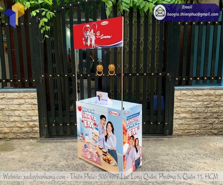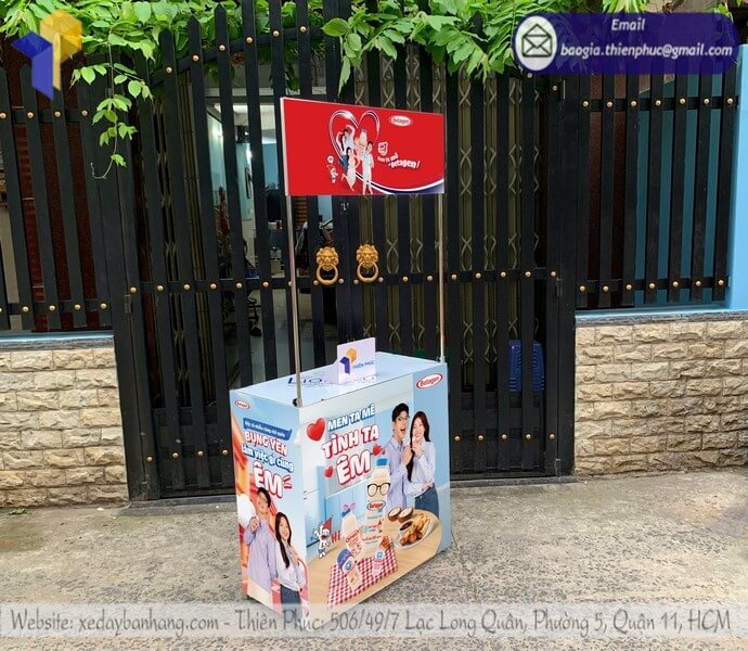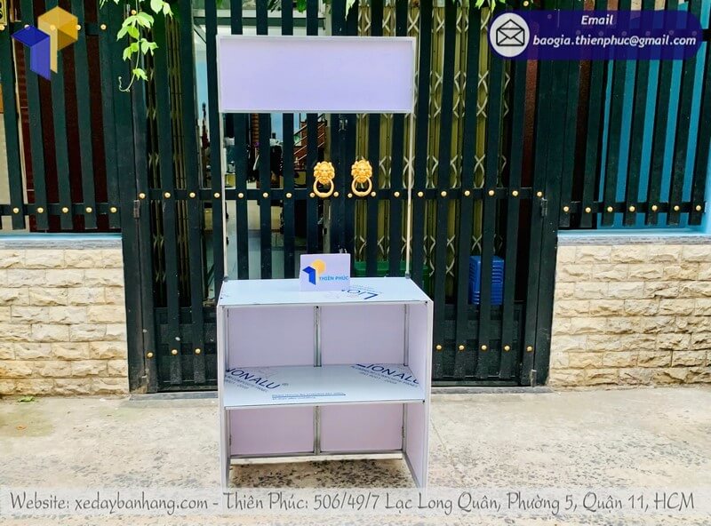 Báo giá quầy sắt sampling quảng cáo gấp gọn in logo - Xưởng sản xuất Thiên Phúc chuyên nhận gia công và sản xuất - cung cấp nhiều mẫu Quầy/booth sampling quảng cáo với giá rẻ, đặt làm thiết kế theo yêu cầu. Dao động với giá chỉ từ 900.000đ - 1.300.000đ/cái trở lên. Đặt từ 10 cái trở lên sẽ được giảm giá chiết khấu ưu đãi nhất. Lên đơn thiết kế duyệt demo và giao hàng nhanh từ 1-3 ngày.