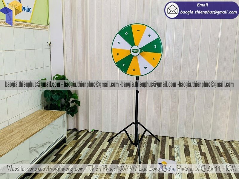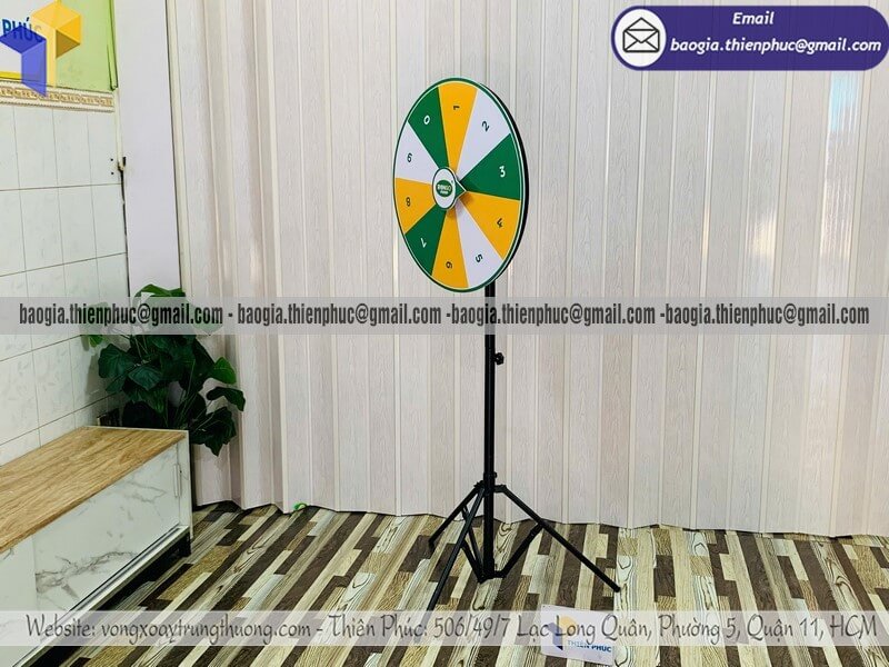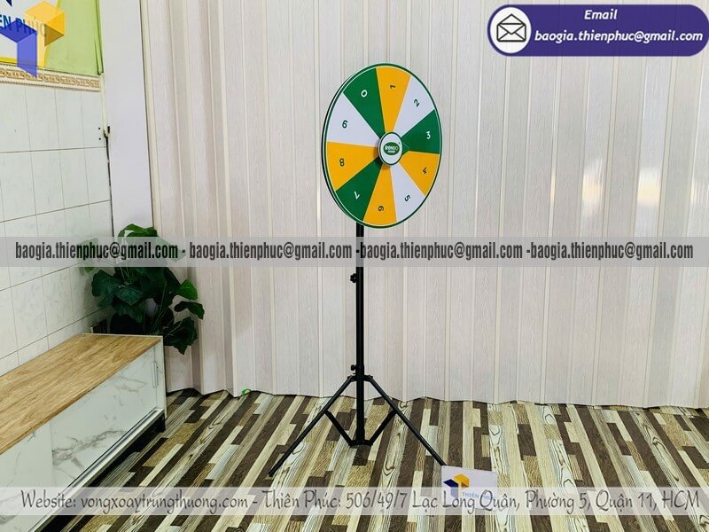 Báo giá vòng xoay lucky draw trò chơi quay thưởng cỡ lớn - Xưởng sản xuất & Công Ty Thiên Phúc là xưởng chuyên nhận đặt làm theo yêu cầu - gia công - sản xuất - cung cấp nhiều mẫu vòng quay quay trúng thưởng với nhiều kích thước và mẫu mã khác nhau đường kính 60cm - 80cm. Thiết kế logo và in ấn theo yêu cầu khách hàng, thiết kế các ô quà tặng trúng thưởng miễn phí. Giá dao động rẻ nhất - cánh tranh nhất thị trường chỉ từ 850.000đ/cái - 1.300.000đ/cái trở lên đối với mẫu vòng quay chân xếp đứng. Đặt hàng số lượng lớn chiết khấu ưu đãi. Liên hệ ngay Thiên Phúc để nhận được báo giá chi tiết và nhanh nhất. Giao hàng trên toàn quốc trong vòng 2-4 ngày.