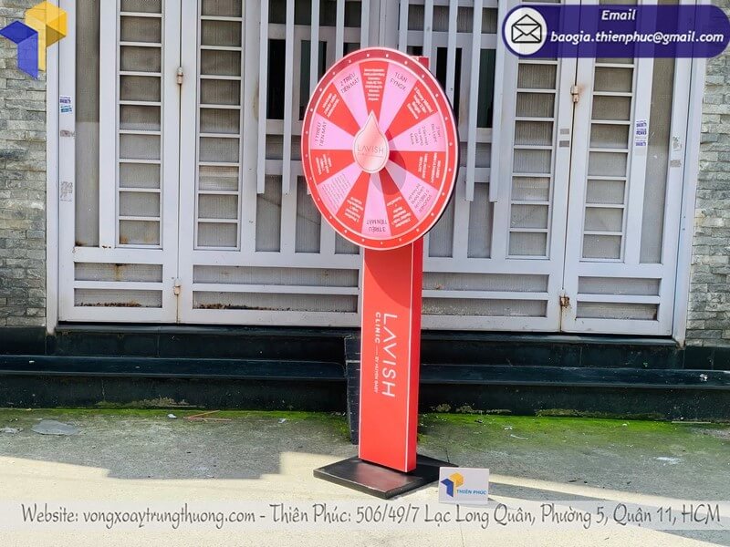 Báo giá vòng xoay trúng thưởng cỡ lớn chính hãng - Xưởng sản xuất Thiên Phúc chuyên gia công vòng xoay cỡ lớn với giá chỉ từ 1.300.000đ/cái trở lên cho vòng xoay bảng trụ, thiết kế logo miễn phí, theo yêu cầu.