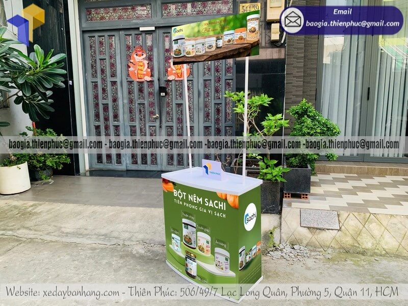 Booth bằng nhựa trưng bày tiếp thị sản phẩm mới - Xưởng sản xuất & Công Ty Thiên Phúc chuyên nhận đặt hàng số lượng lớn, sản xuất, cung cấp, thiết kế & in ấn logo thương hiệu với nhiều mẫu booth/quầy sampling tiếp thị sản phẩm quảng cáo lưu động với giá rẻ nhất dao động chỉ từ 900.000đ/cái - 1.000.000đ/cái trở lên đối với Booth/quầy nhựa. Hỗ trợ xuất hóa đơn VAT nhanh chóng. Đặt từ 10 quầy/booth trở lên được hưởng chiết khấu cực rẻ. Liên hệ ngay với chúng tôi để nhận ngay báo giá chi tiết nhanh chóng - đặt hàng giao ngay trong vòng 1-3 ngày tùy khu vực