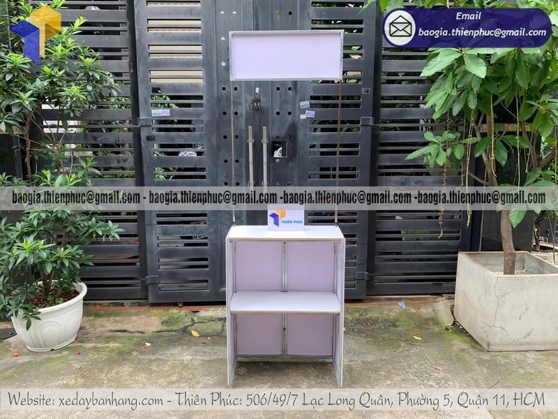 Booth bằng sắt tiếp thị giới thiệu sản phẩm cho sự kiện - Xưởng sản xuất & Công Ty Thiên Phúc là xưởng chuyên sản xuất và cung cấp nhiều mẫu quầy/booth sampling quảng cáo sản phẩm lưu động với giá rẻ nhất - cạnh tranh nhất trên thị trường dao động trong khoảng từ 900.000đ/cái trở lên đã bao gồm chi phí thiết kế & in ấn logo theo yêu cầu khách hàng. Đặt với đơn hàng số lượng lớn từ 10 quầy trở lên được chiết khấu ưu đãi giá sỉ. Giao hàng nhanh chóng trên toàn quốc từ 1-3 ngày tùy theo từng khu vực.