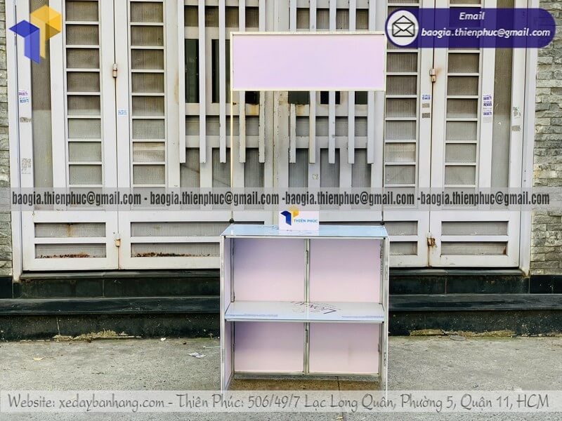 Ở phân khúc cơ bản, các mẫu booth sắt đơn giản, kích thước tiêu chuẩn, thiết kế gọn gàng, phù hợp trưng bày – giới thiệu sản phẩm tại điểm bán, sự kiện nhỏ hoặc sampling, có mức giá dao động chỉ từ khoảng trên 900.000đ/cái – 1.300.000đ/cái trở lên. Đây là lựa chọn tiết kiệm – hiệu quả – bền bỉ, đặc biệt phù hợp cho khách hàng cần giải pháp quảng bá chi phí thấp nhưng vẫn đảm bảo tính thẩm mỹ và nhận diện thương hiệu.