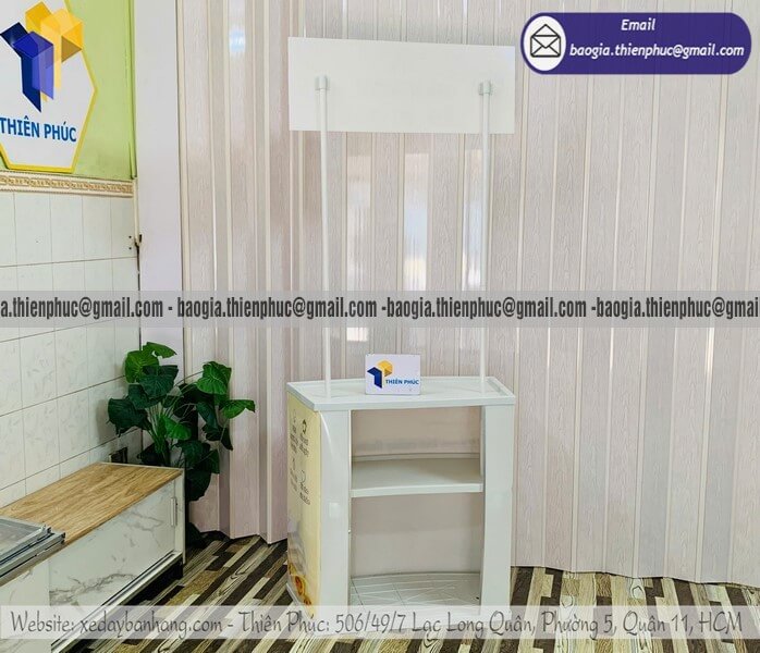 Booth nhựa cho PG quảng cáo sản phẩm dùng thử rẻ - Xưởng sản xuất & Công Ty Thiên Phúc chuyên nhận sản xuất - cung cấp - thiết kế & in ấn logo thương hiệu với nhiều mẫu booth/quầy sampling tiếp thị sản phẩm quảng cáo lưu động với giá rẻ nhất dao động chỉ từ 800.000đ/cái - 900.000đ/cái trở lên đối với Booth/quầy nhựa. Hỗ trợ xuất hóa đơn VAT nhanh chóng. Đặt từ 10 quầy/booth trở lên được hưởng chiết khấu cực rẻ. Liên hệ ngay với chúng tôi để nhận ngay báo giá chi tiết nhanh chóng - đặt hàng giao ngay trong vòng 1-3 ngày tùy khu vực