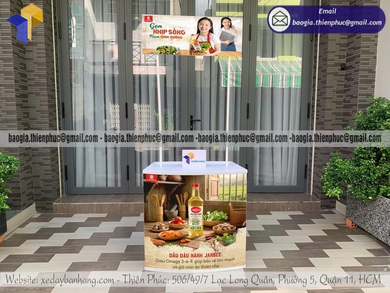 Tên sản phẩm: Booth nhựa di động trưng bày sản phẩm in logo DẦU ĐẬU NÀNH JANBEE