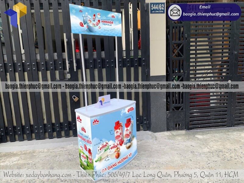Mẫu quầy sampling quảng cáo có bánh xe di chuyển lưu động