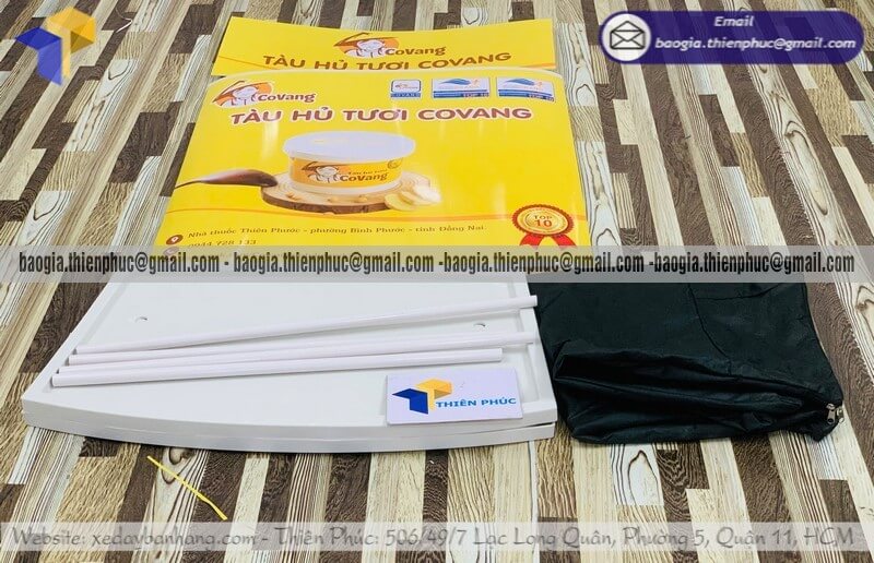 Sản phẩm thường được làm từ nhựa PP, nhựa PVC hoặc formex kết hợp khung nhựa chắc chắn, có thể in logo thương hiệu, hình ảnh sản phẩm hoặc thông điệp marketing.