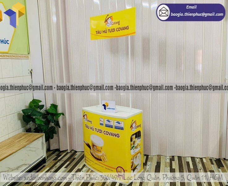 Booth sampling bằng nhựa cho PG bán hàng di động - Xưởng sản xuất & Công Ty Thiên Phúc chuyên nhận sản xuất - cung cấp - thiết kế & in ấn logo thương hiệu với nhiều mẫu booth/quầy sampling tiếp thị sản phẩm quảng cáo lưu động với giá rẻ nhất dao động chỉ từ 800.000đ/cái - 900.000đ/cái trở lên đối với Booth/quầy nhựa. Hỗ trợ xuất hóa đơn VAT nhanh chóng. Đặt từ 10 quầy/booth trở lên được hưởng chiết khấu cực rẻ. Liên hệ ngay với chúng tôi để nhận ngay báo giá chi tiết nhanh chóng - đặt hàng giao ngay trong vòng 1-3 ngày tùy khu vực