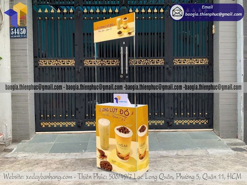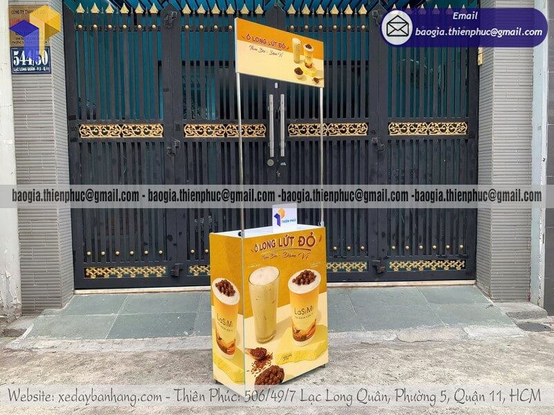Mẫu booth sampling quảng cáo in thương hiệu đẹp bằng sắt