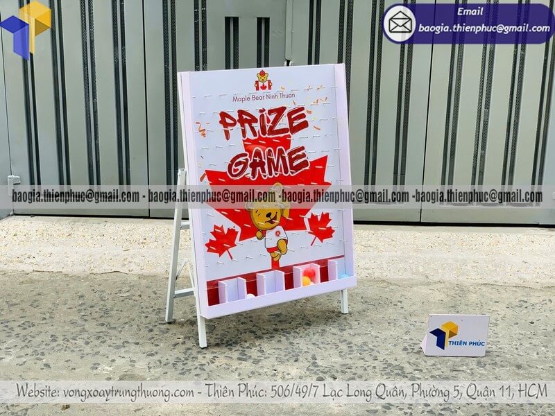 Thông thường, giá khung thả rơi banh ziczac may mắn lớn chỉ dao động trong mức giá chính từ trên 750.000đ/cái – 2.200.000đ/cái trở lên, tùy theo kích thước tổng thể và yêu cầu gia công cơ bản. Với mẫu tiêu chuẩn phục vụ event phổ thông, mức giá nằm trong khoảng từ 1.400.000đ/cái – 2.200.000đ/cái, đã bao gồm khung chắc chắn, mặt mica trong suốt, hệ thống ziczac và ô nhận thưởng hoàn chỉnh. Trường hợp khách hàng cần kích thước lớn hơn hoặc tùy chỉnh theo nhận diện thương hiệu, chi phí chỉ tăng nhẹ và vẫn được giữ ở mức hợp lý.