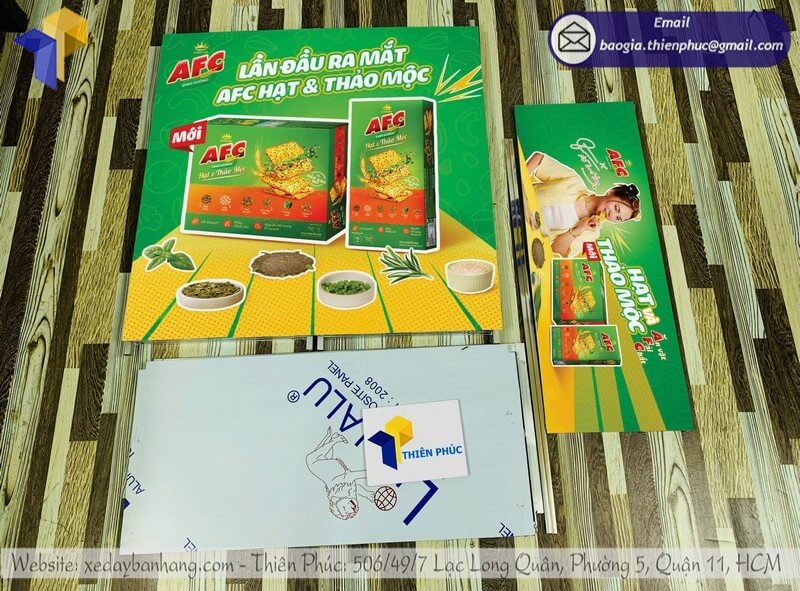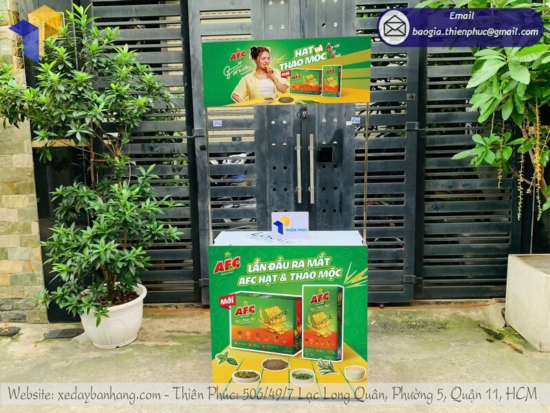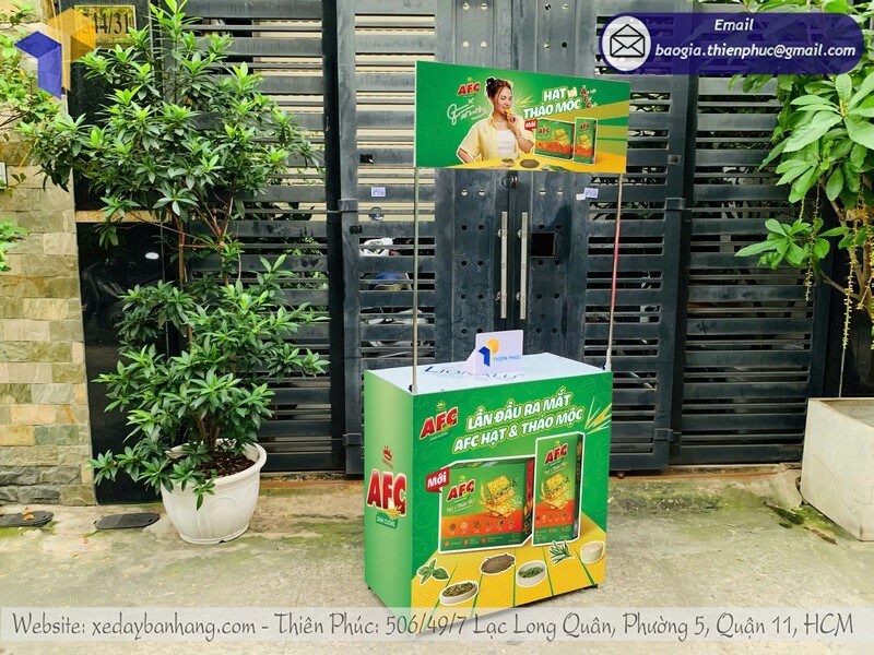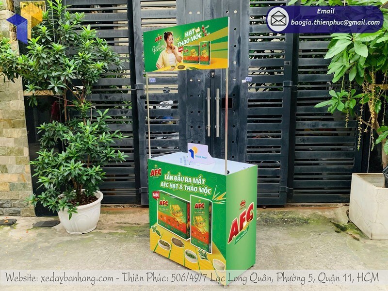 Tên sản phẩm: Đặt làm booth sắt sampling di động in logo sự kiện với logo nhãn hàng bánh thương hiệu AFC