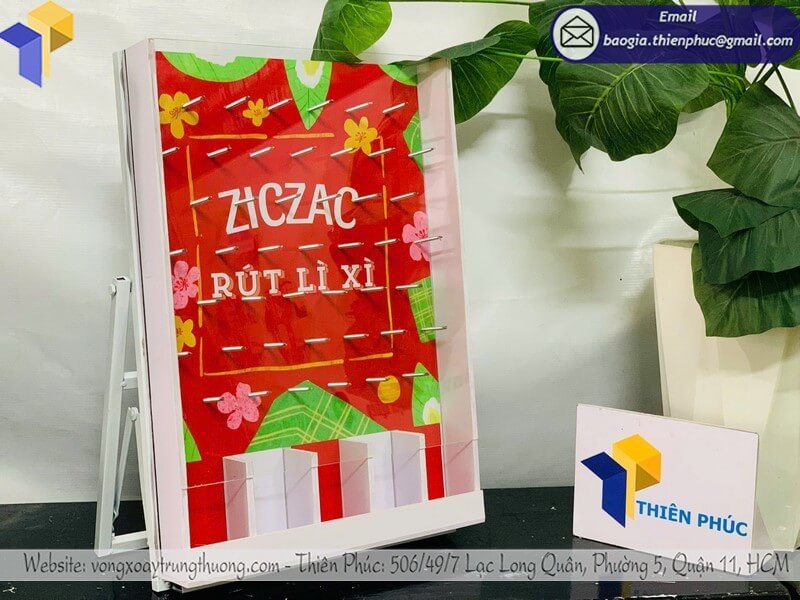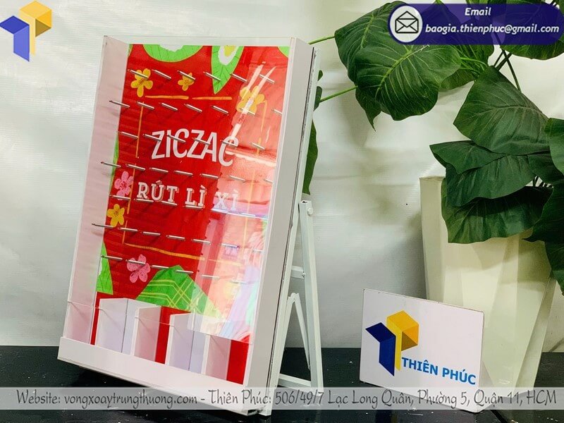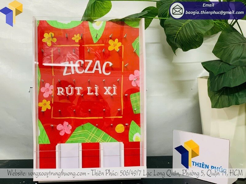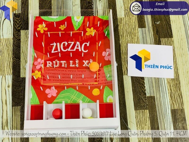 Tên sản phẩm: Đặt làm hộp thả banh ziczac may mắn để bàn minigame cho dịp TẾT với nhãn hiệu ZICZAC RÚT LÌ XÌ