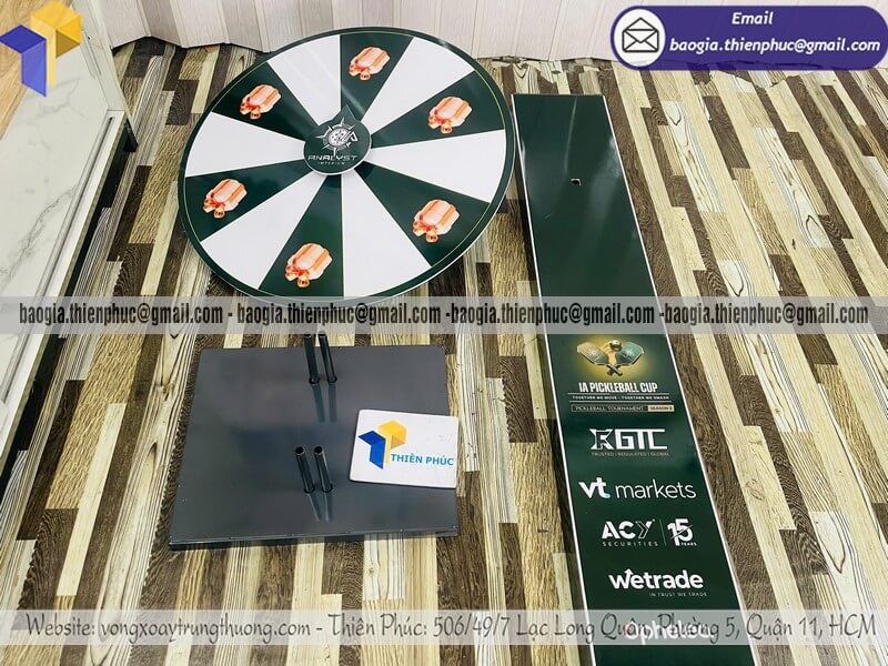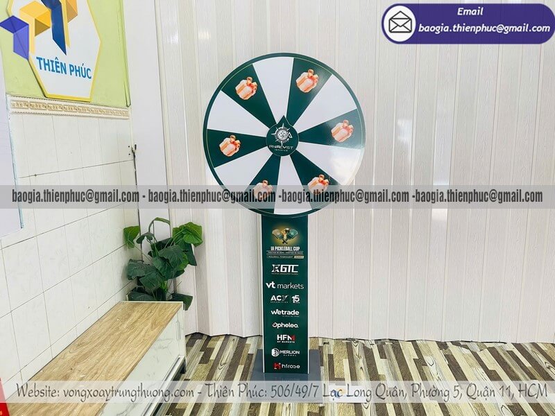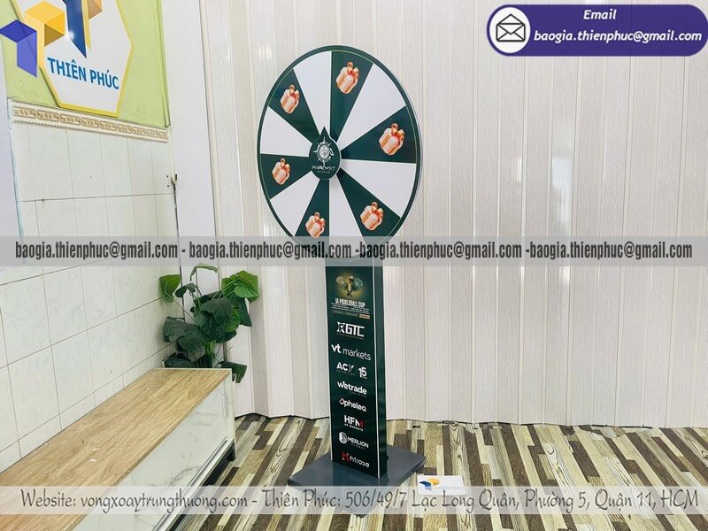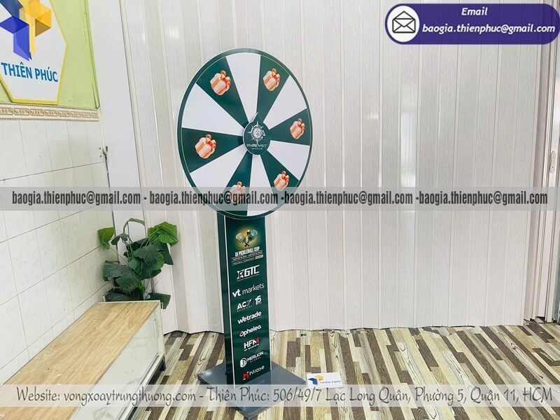 Đặt vòng xoay cỡ lớn random trúng quà tặng marketing - Xưởng sản xuất & Công Ty Thiên Phúc chuyên nhận đặt làm kích thước theo yêu cầu, sản xuất, gia công, cung cấp nhiều mẫu vòng xoay quảng cáo từ nhỏ đến cỡ lớn trúng thưởng chính hãng. Giá rẻ cạnh tranh nhất thị trường dao động chỉ từ 1.300.000đ/cái - 2.600.000đ/cái đối với mẫu vòng xoay đứng thân trụ/bảng trụ kèm thiết kế logo các ô quà tặng, voucher miễn phí theo yêu cầu khách hàng. Hỗ trợ xuất hóa đơn VAT nhanh chóng. Giao hàng nhanh trên toàn quốc từ 2-3 ngày.