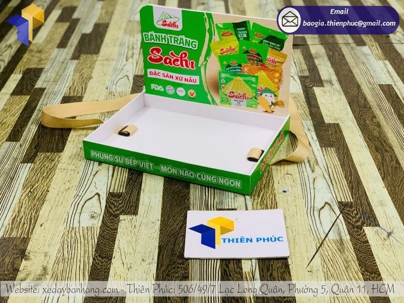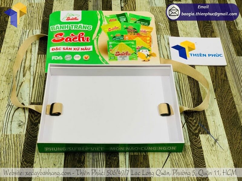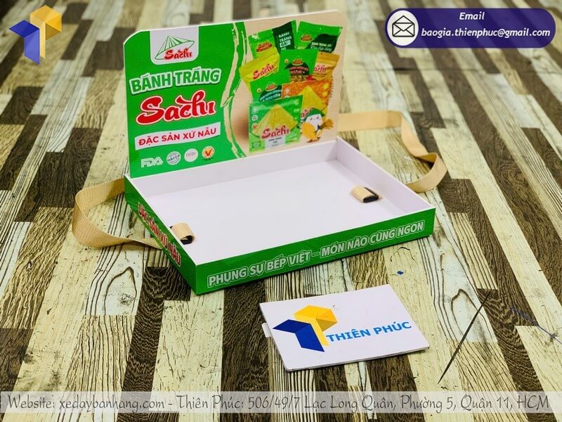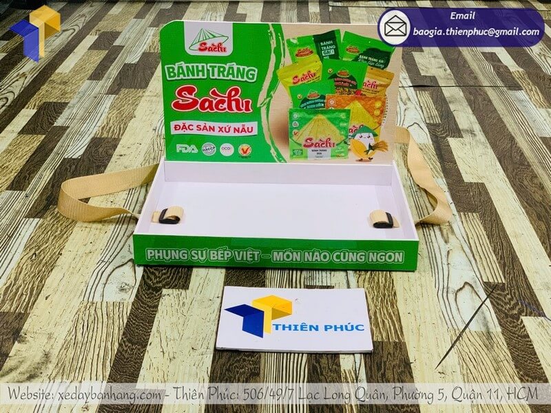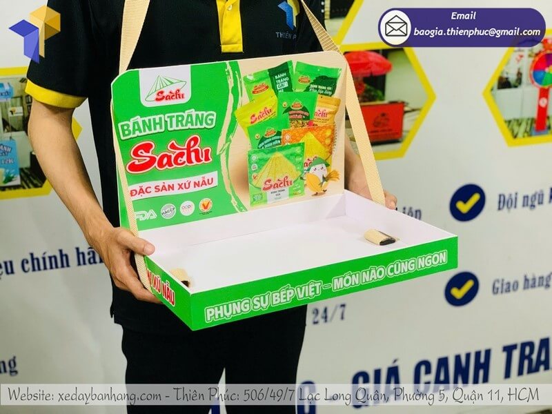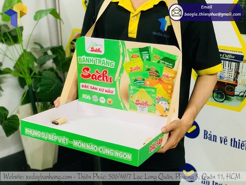 Tên sản phẩm: Địa chỉ mua khay đeo sampling phát mẫu thử với nhãn hàng BÁNH TRÁNG SHACHI