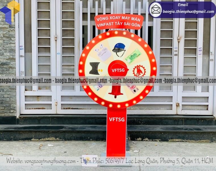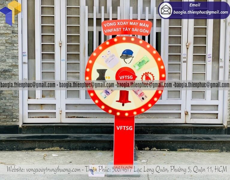 Tên sản phẩm: Gia công vòng xoay số quay trúng thưởng cỡ lớn minigame cho nhãn hàng VINFAST TÂY SÀI GÒN