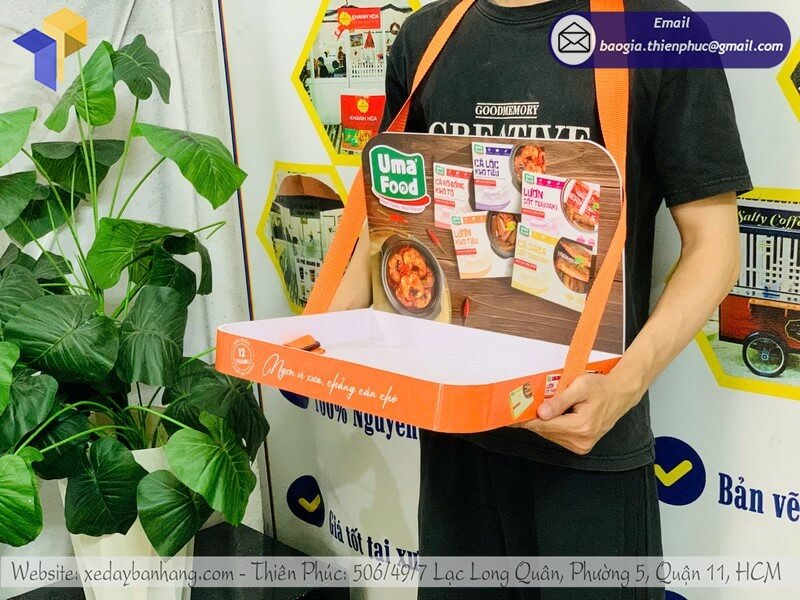 Tên sản phẩm: Giá khay đeo sampling nhựa đựng sample sự kiện rẻ có logo nhãn hàng UMA FOOD