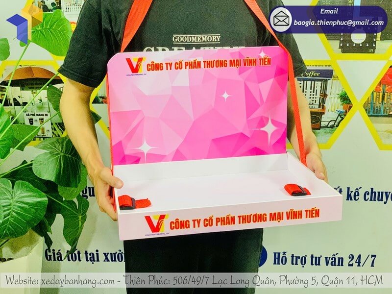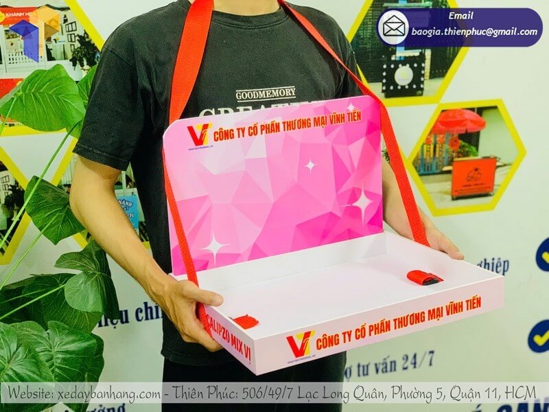 Giá khay đựng sản phẩm sampling đeo vai - Thiên Phúc báo giá nhanh chóng chỉ với 5 phút, đặt hàng số lượng lớn giá ưu đãi 120.000đ/khay, nhận thiết kế và in ấn theo yêu cầu.