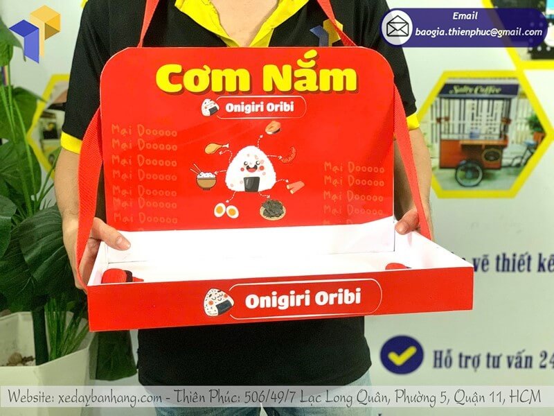 Tên sản phẩm: Khay đeo PG sampling phát mẫu sản phẩm cho sự kiện với sản phẩm CƠM NẮM