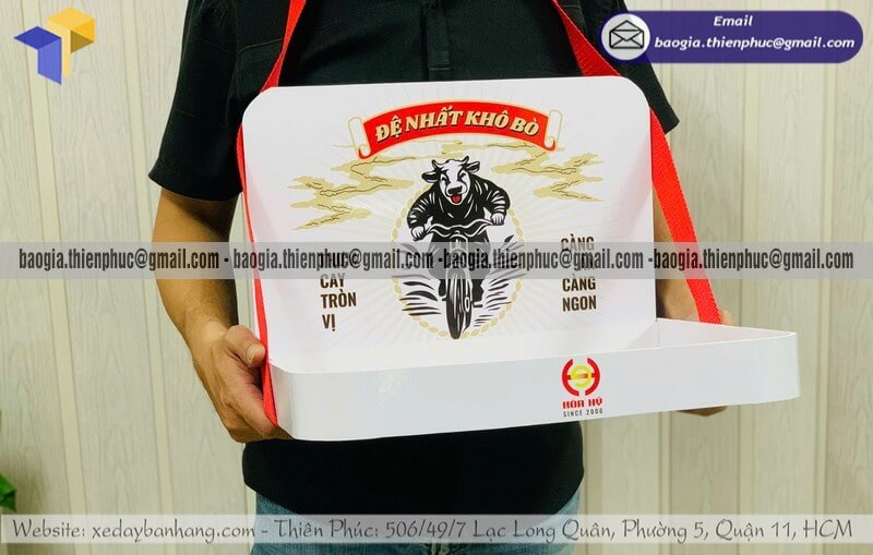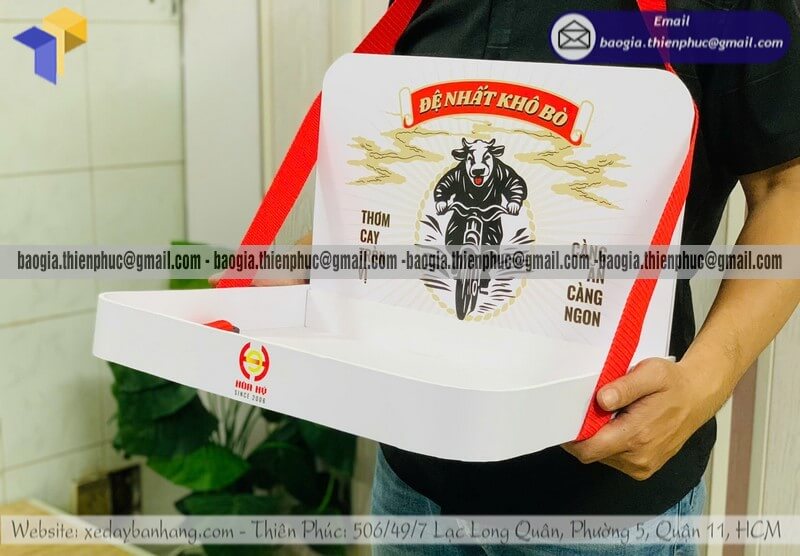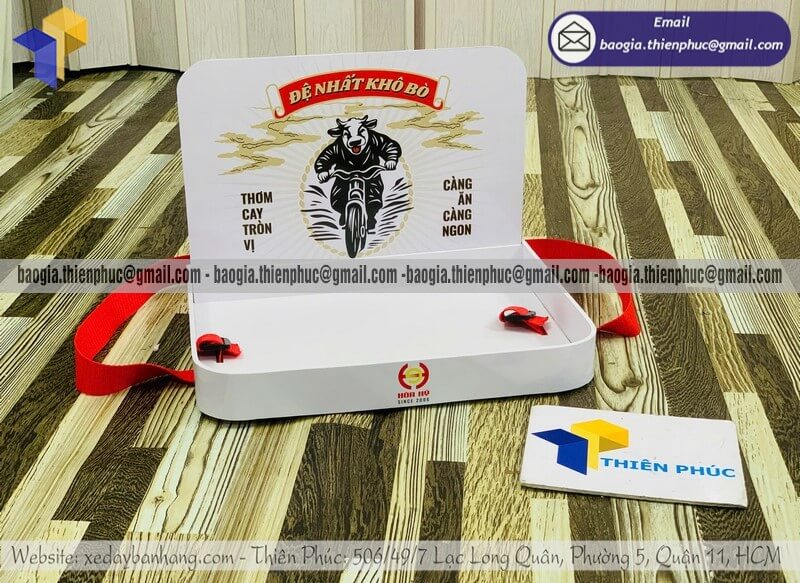 Tên sản phẩm: Khay đeo sampling cho PG phát hàng mẫu miễn phí với logo thương hiệu ĐỆ NHẤT KHÔ BÒ