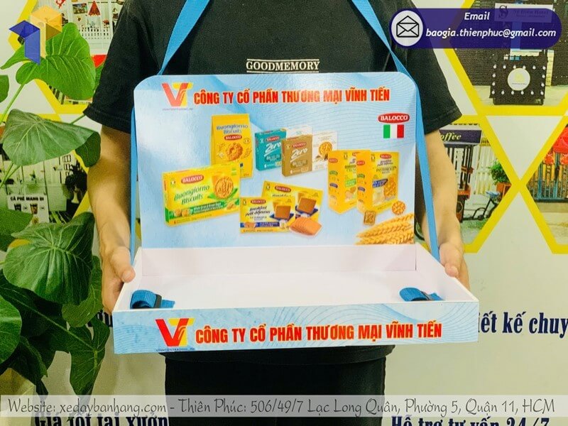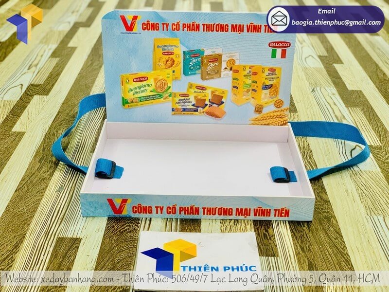 Tên sản phẩm: Khay đựng mẫu thử có dây đeo in logo nhãn hiệu bánh BALOCCO