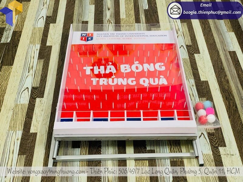 Mẫu bảng ziczac chơi thả bóng trúng thưởng mini game là sản phẩm giải trí, kết hợp yếu tố may mắn và tương tác, phù hợp cho các sự kiện như hội chợ, trung tâm thương mại, sinh nhật, khai trương, hoặc các chương trình khuyến mãi. Bảng được thiết kế theo dạng ziczac với các rãnh bóng dốc nhỏ, giúp bóng di chuyển một cách ngẫu nhiên đến các ô trúng thưởng khác nhau.