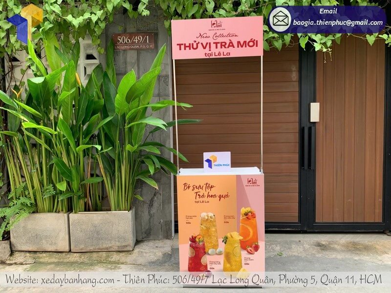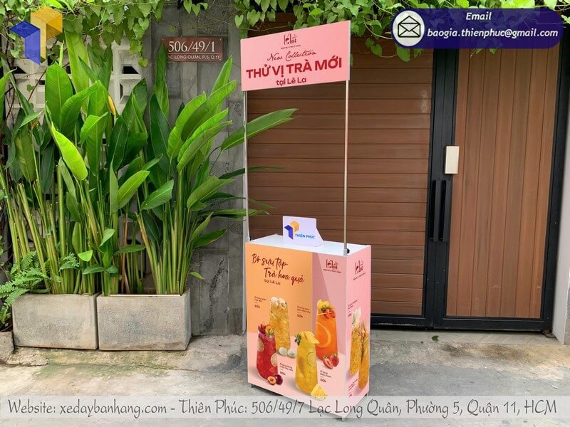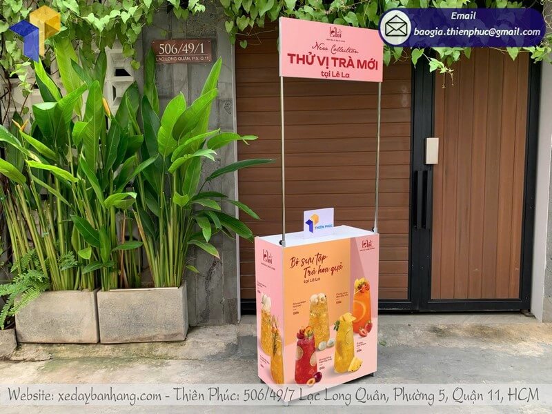 Tên sản phẩm: Mẫu booth sắt quảng cáo di động in logo thương hiệu với logo THỬ VỊ TRÀ MỚI TẠI LÊ LA