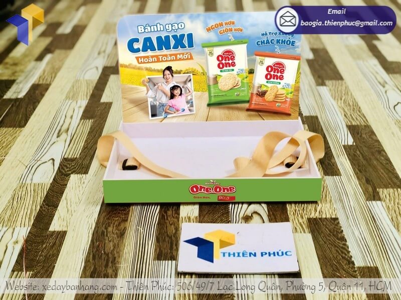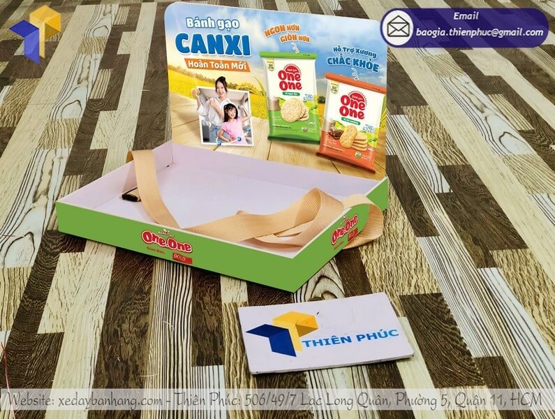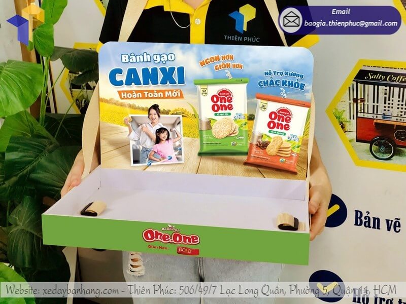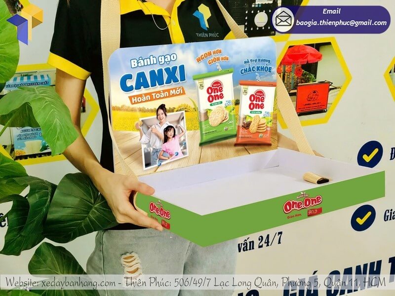 Tên sản phẩm: Mẫu Khay đeo PG Sampling đựng sản phẩm quảng cáo với logo nhãn hàng Bánh Gạo ONE ONE