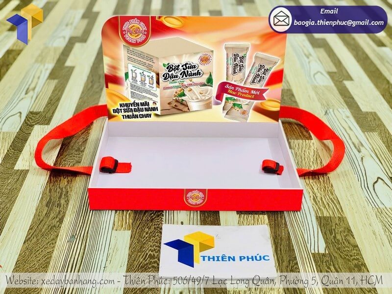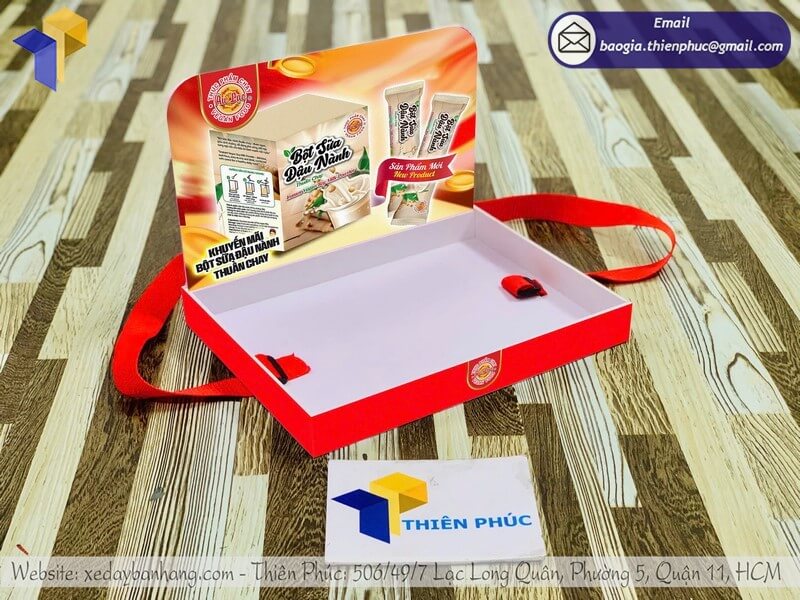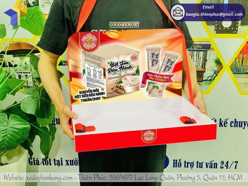 Tên sản phẩm: Mẫu khay nhựa sampling đeo phát sample đẹp sản phẩm BỘT SỮA ĐẬU NÀNH Thuần Chay.