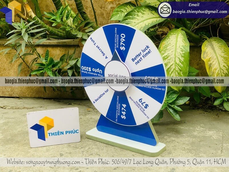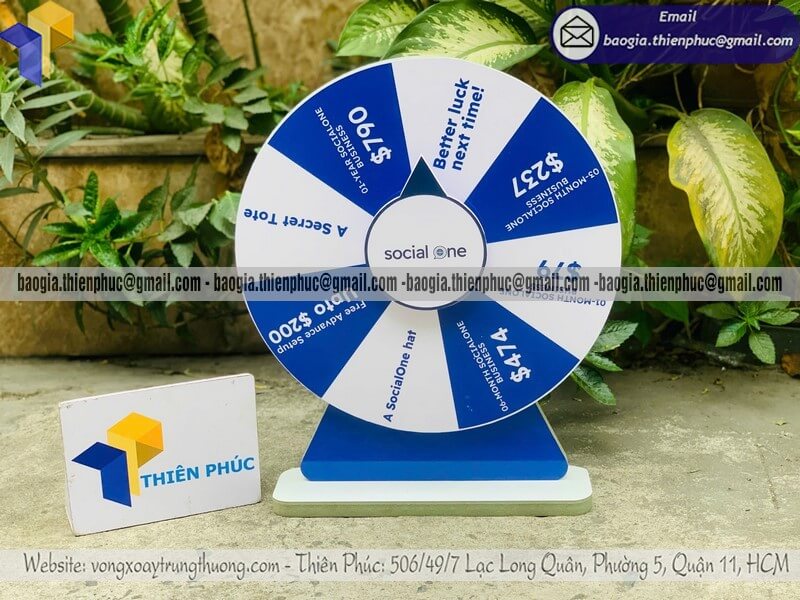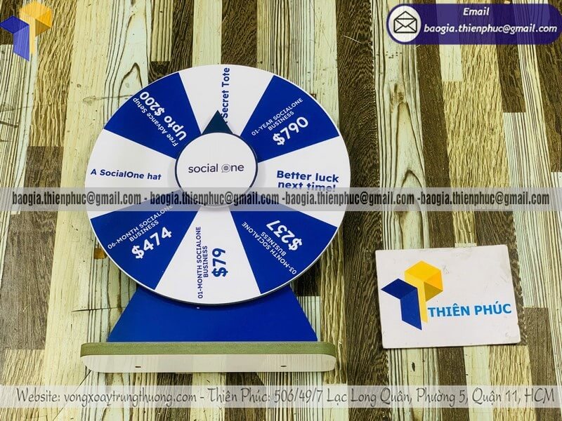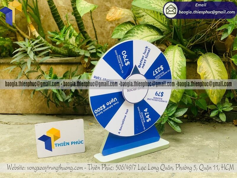 Với lợi thế gia công trực tiếp tại xưởng Thiên Phúc, khách hàng dễ dàng lựa chọn mẫu vòng xoay trúng quà phù hợp nhất với không gian, mục đích sử dụng và ngân sách, đồng thời đảm bảo chất lượng, tiến độ và giá thành tối ưu.