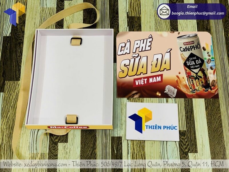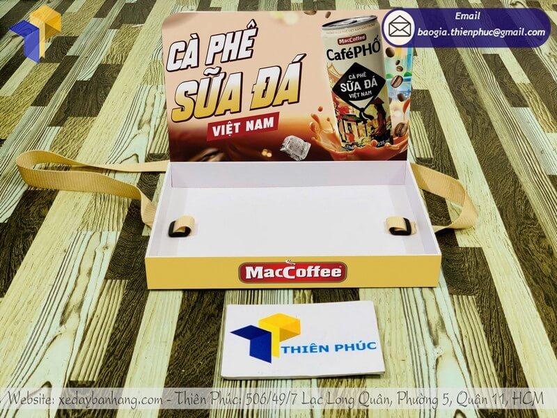 Tên sản phẩm: Mua khay cho PG sampling có dây đeo bán hàng giá rẻ với nhãn hàng MACCOFFEE - CAFE PHỐ