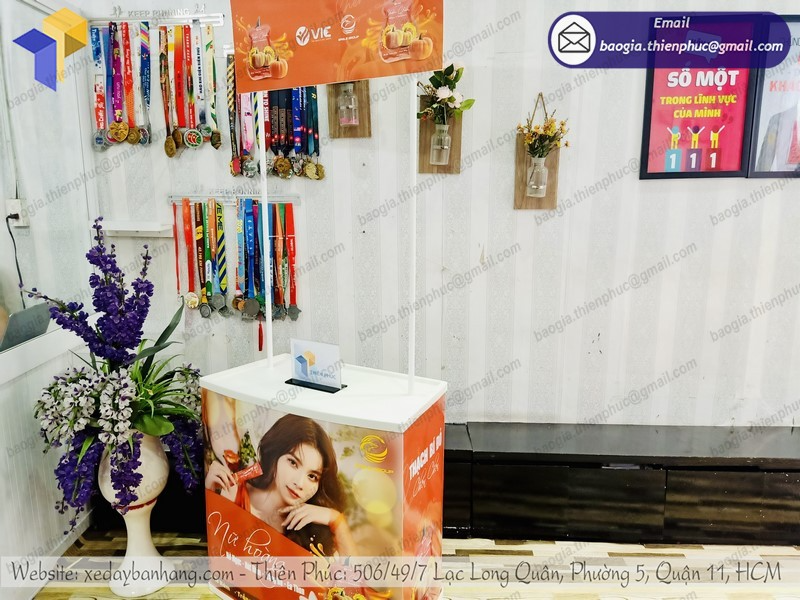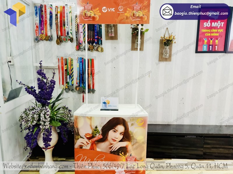 Thiên Phúc với hơn 10 năm kinh nghiệm tay nghề trong nghành nghề nhà cung cấp sản xuất đồng phân phối những mẫu sản phẩm quảng cáo trong đó có quầy sampling bằng nhựa