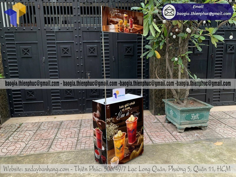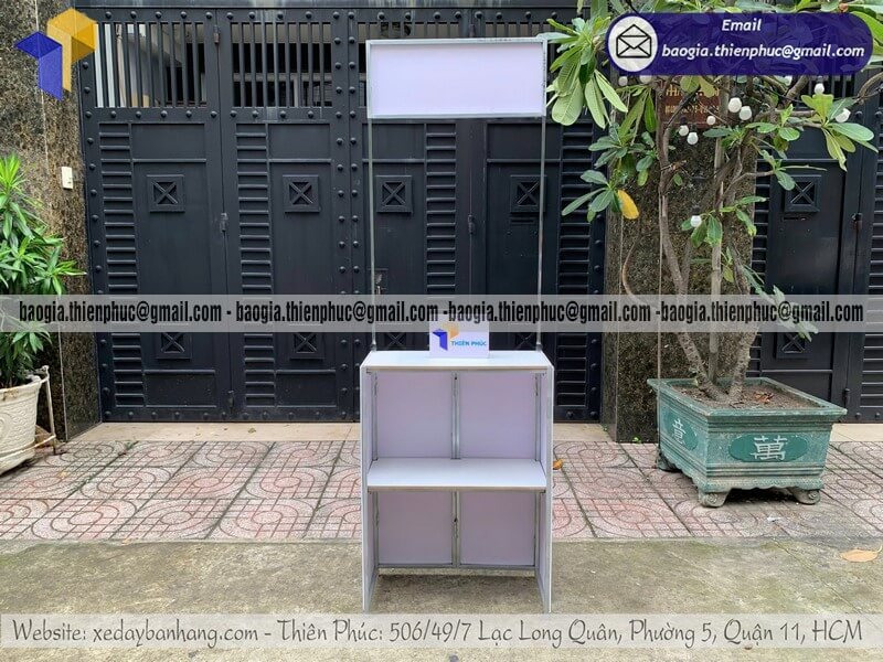 Nơi bán quầy sắt tiếp thị quảng cáo giới thiệu sản phẩm - Xưởng sản xuất & Công Ty Thiên Phúc là xưởng chuyên sản xuất và cung cấp nhiều mẫu quầy/booth sampling quảng cáo sản phẩm lưu động với giá rẻ nhất - cạnh tranh nhất trên thị trường dao động trong khoảng từ 900.000đ/cái - 1.300.000đ/cái trở lên đã bao gồm chi phí thiết kế & in ấn logo theo yêu cầu khách hàng. Đặt với đơn hàng số lượng lớn từ 10 quầy trở lên được chiết khấu ưu đãi giá sỉ. Giao hàng nhanh chóng trên toàn quốc từ 1-3 ngày tùy theo từng khu vực.
