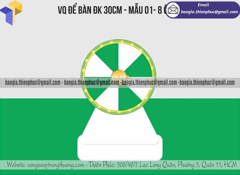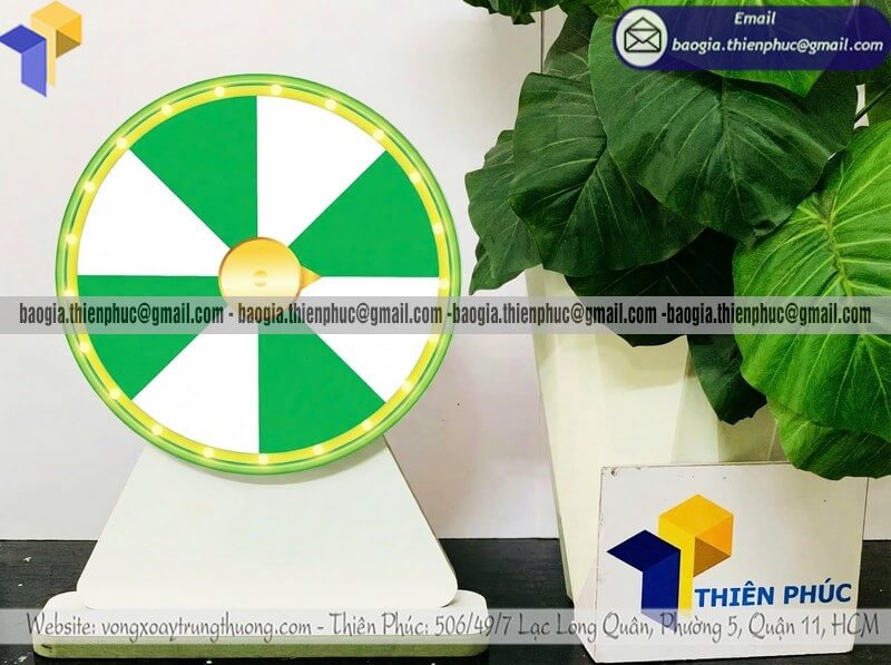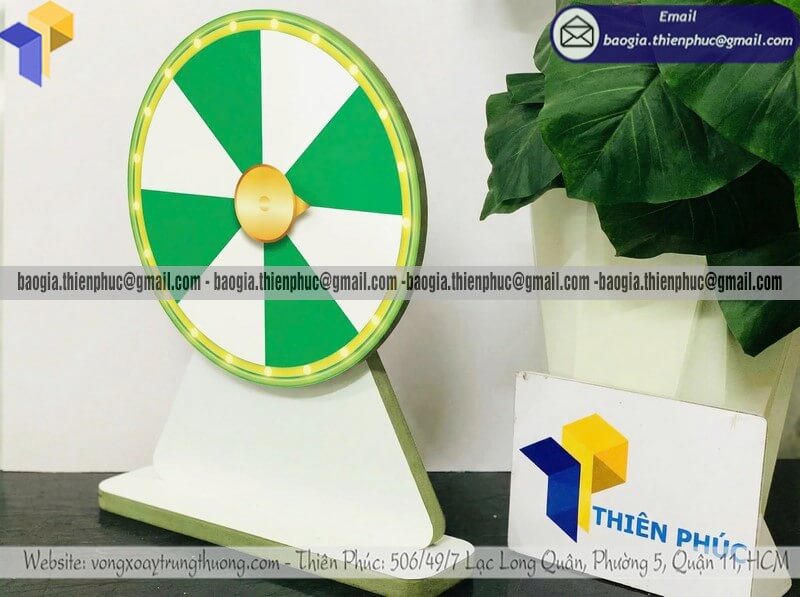 Nơi bán vòng xoay để bàn quay thưởng may mắn theo yêu cầu là đơn vị trực tiếp thiết kế – gia công – sản xuất vòng xoay mini để bàn theo đúng mong muốn của khách hàng, từ kích thước, chất liệu, màu sắc đến nội dung ô thưởng.