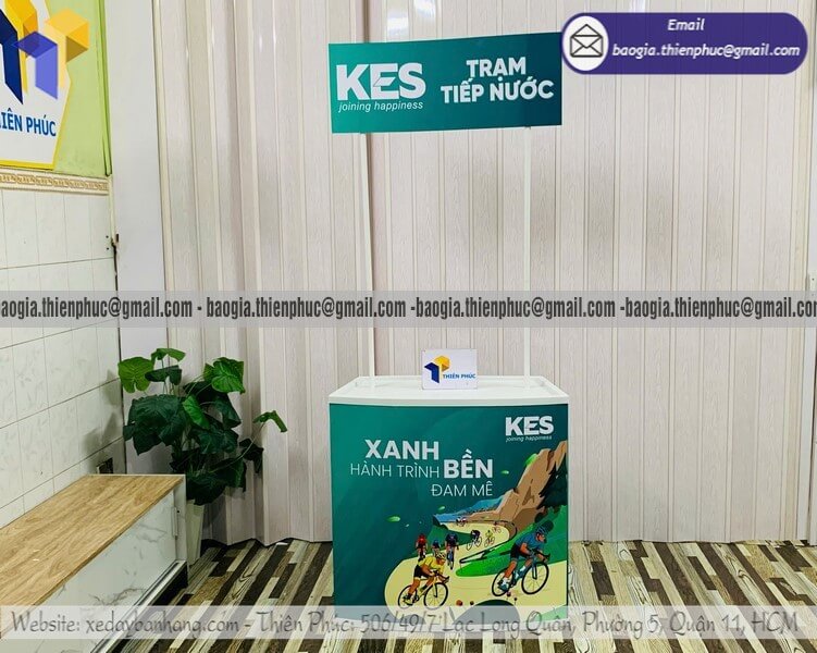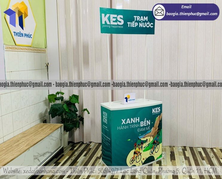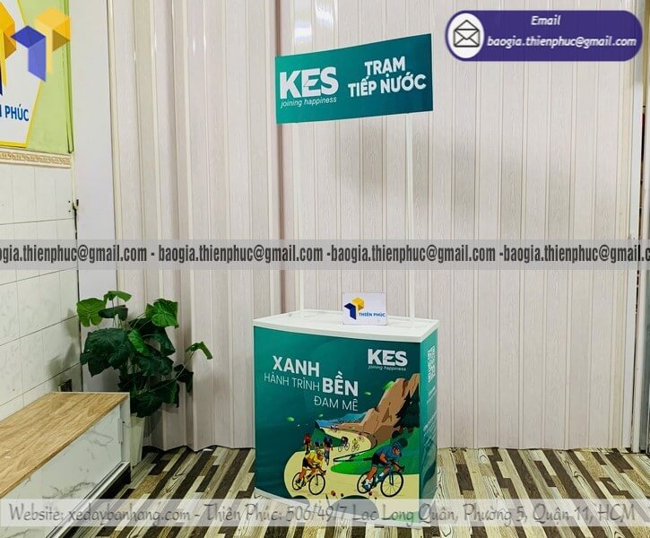 Tên sản phẩm: Quầy nhựa cho PG trưng bày sản phẩm sự kiện ĐUA XE ĐẠP TRẠM TIẾP NƯỚC KES