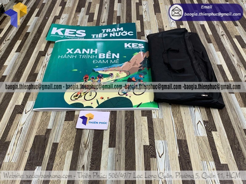 Liên hệ xưởng hoặc văn phòng, chọn mẫu, xác nhận số lượng, màu sắc, in logo (nếu cần) và đặt cọc 50%. Phần còn lại thanh toán khi nhận hàng. Đặt hàng sớm giúp đảm bảo quầy có mặt kịp cho sự kiện.