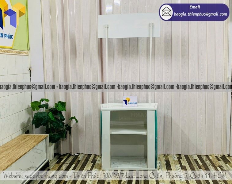 Quầy nhựa cho PG trưng bày sản phẩm sự kiện - Xưởng sản xuất & Công Ty Thiên Phúc chuyên nhận sản xuất, cung cấp, thiết kế & in ấn logo thương hiệu với nhiều mẫu booth/quầy sampling tiếp thị sản phẩm quảng cáo lưu động với giá rẻ nhất dao động chỉ từ 900.000đ/cái - 1.000.000đ/cái trở lên đối với Booth/quầy nhựa. Hỗ trợ xuất hóa đơn VAT nhanh chóng. Đặt từ 10 quầy/booth trở lên được hưởng chiết khấu cực rẻ. Liên hệ ngay với chúng tôi để nhận ngay báo giá chi tiết nhanh chóng - đặt hàng giao ngay trong vòng 1-3 ngày tùy khu vực