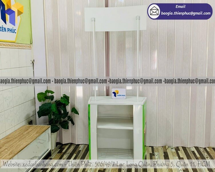 Công Ty Thiên Phúc là xưởng sản xuất trực tiếp với hơn 10 năm kinh nghiệm trong lĩnh vực gia công – sản xuất – cung cấp quầy kệ, booth sampling và các sản phẩm trưng bày quảng cáo.