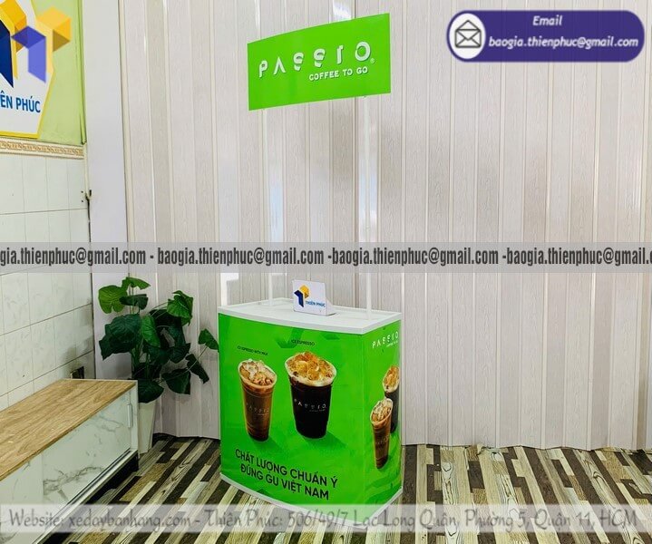 Tên sản phẩm: Quầy nhựa PG sampling mẫu mới dùng thử giá rẻ với thương hiệu COFFEE BASSIO