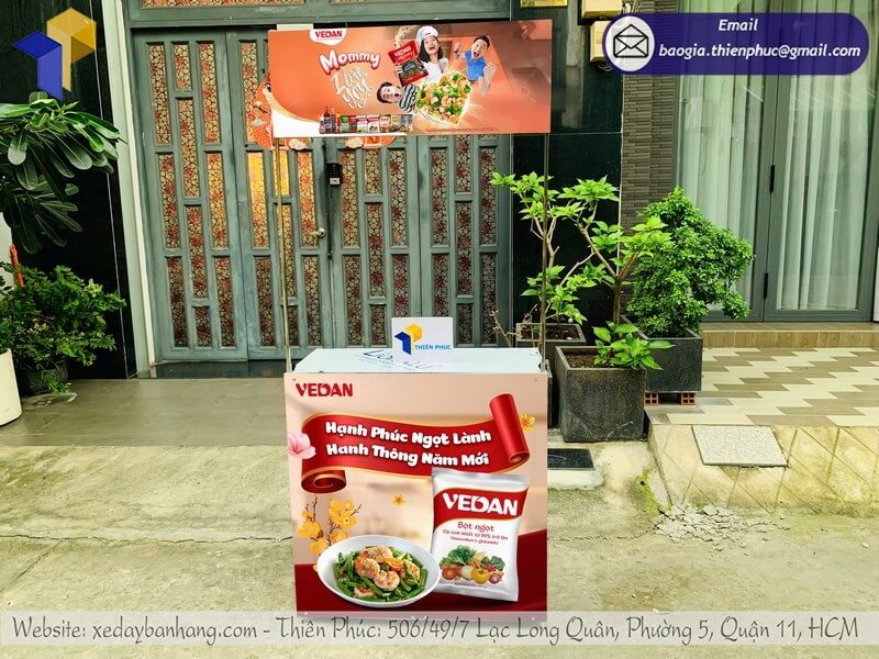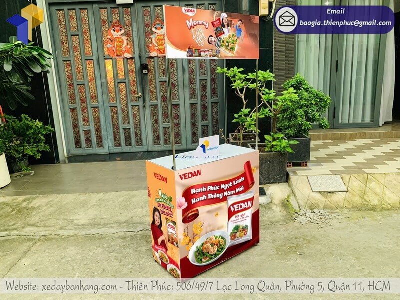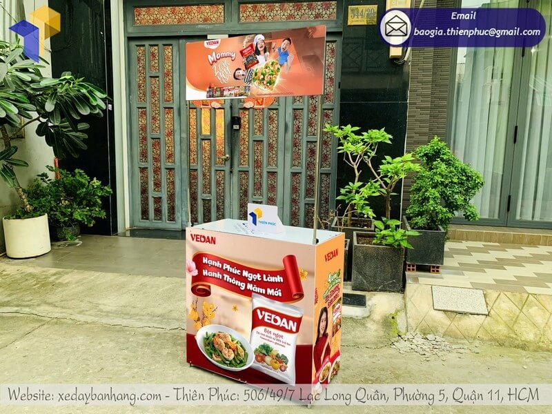 Tên sản phẩm: Quầy sắt tiếp thị quảng cáo gấp gọn in logo giá rẻ cho nhãn hàng BỘT NGỌT VEDAN