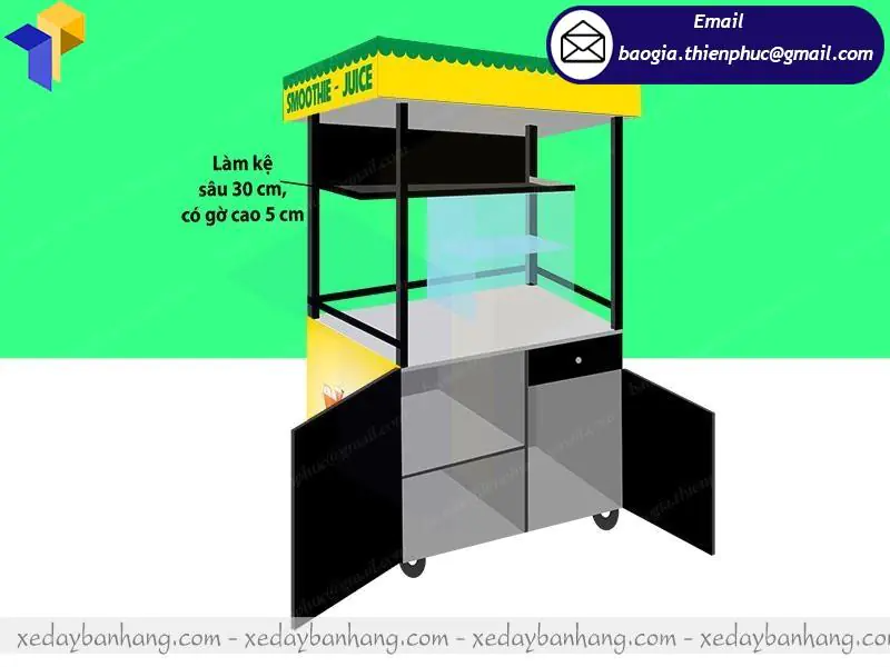 Mẫu tủ sắt bán sinh tố nước ép trái cây ngày nay được gia công với đa dạng mẫu mã, kích thước, màu sắc in ấn thiết kế theo yêu cầu khách hàng đặt. Với các phụ kiện đi kèm theo tủ thì bạn có thể yên tâm về vấn đề chưa đựng vật dụng kinh doanh buôn bán, bạn có thể di chuyển nó đến bất kỳ nơi nào mà bạn muốn kinh doanh.