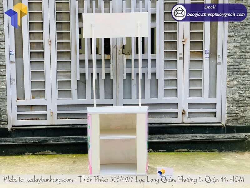 + Hai cây chống nối với logo và phần quầy bằng thép ống sơn trắng