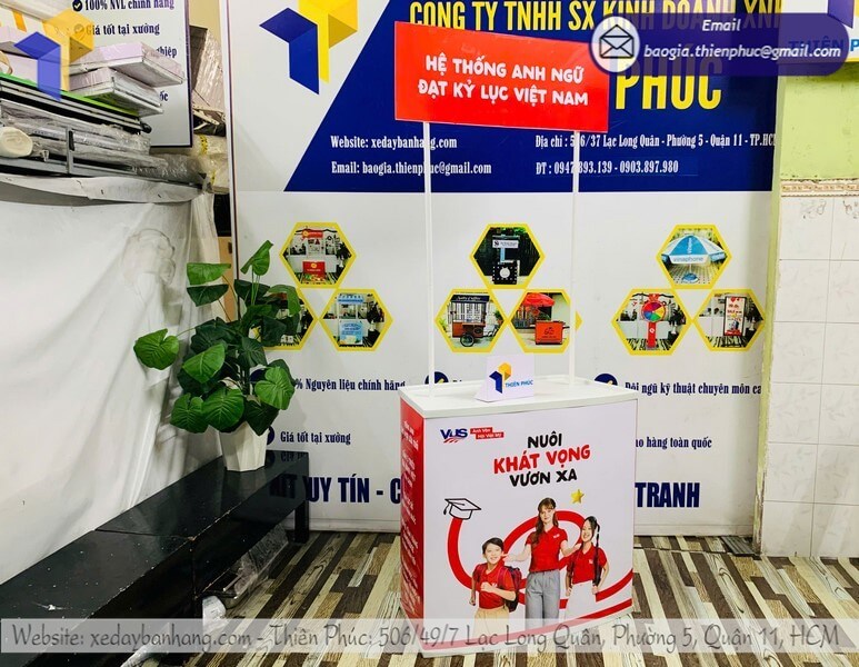 Tên sản phẩm: Xưởng gia công quầy nhựa tiếp thị lưu động giá rẻ TRƯỜNG ANH NGỮ VUS