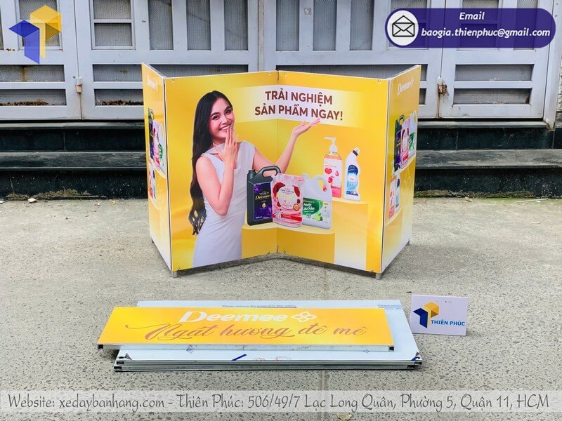 Với hơn 10 năm kinh nghiệm trong lĩnh vực sản xuất – gia công – cung cấp, Công Ty Thiên Phúc tự hào là địa chỉ uy tín cho các doanh nghiệp và cá nhân cần booth bán hàng di động ngoài trời, quầy bán hàng di động, standee, và nhiều sản phẩm quảng cáo khác.