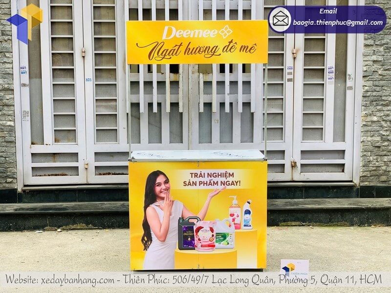 Tên sản phẩm: Xưởng làm booth sắt bán hàng di động ngoài trời rẻ cho thương hiệu NƯỚC GIẶT XẢ DEEMEE