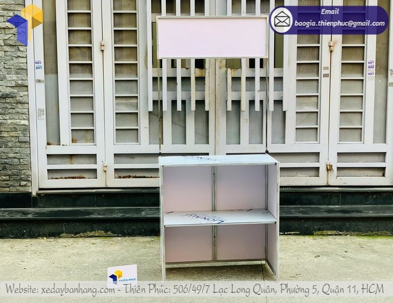 Xưởng làm booth sắt sampling lưu động giá sỉ - Thiên Phúc là xưởng chuyên nhận sản xuất & gia công nhiều mẫu booth sampling lưu động với thiết kế logo hoàn toàn miễn phí. Giá rẻ tận gốc - cạnh tranh nhất thị trường, dao động với giá chỉ từ 900.000đ/cái trở lên đối với booth bằng sắt. Xuất hóa đơn VAT. Liên hệ Thiên Phúc để có thể nhận được báo giá chính xác và tư vấn mẫu mã kích thước cũng như thiết kế.