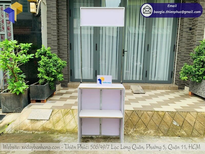 Xưởng sản xuất mẫu booth sắt in logo giá rẻ - Xưởng sản xuất Thiên Phúc chuyên cung cấp và gia công nhiều mẫu quầy với giá rẻ chỉ từ 900.000đ/cái với giá sỉ khi đặt hàng số lượng lớn.